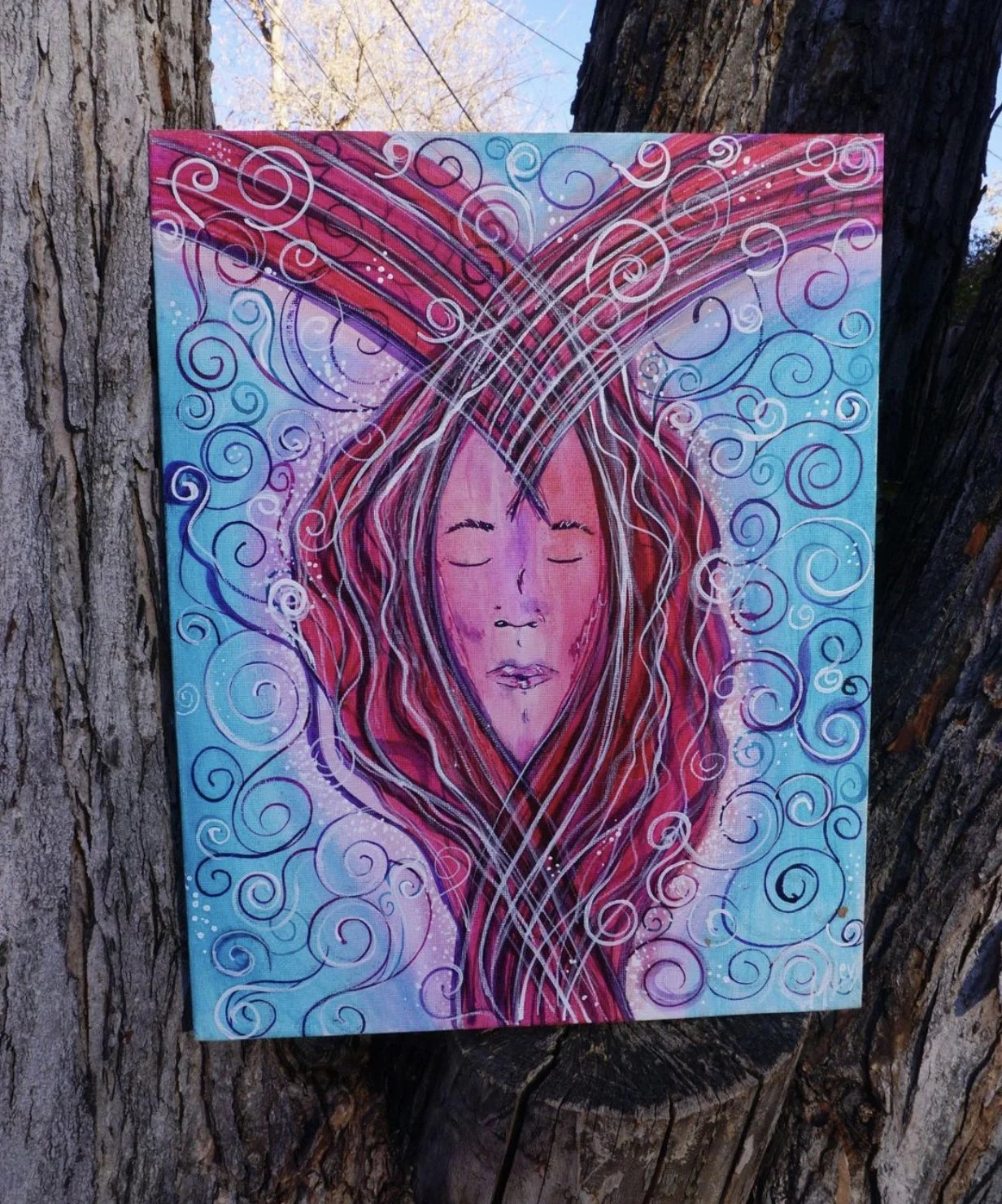 Connection to the divine feminine is so powerful, and it was indeed powerful to paint this yoni piece. Connection, creation, beginnings. Creativity, intuition, love for yourself and others.