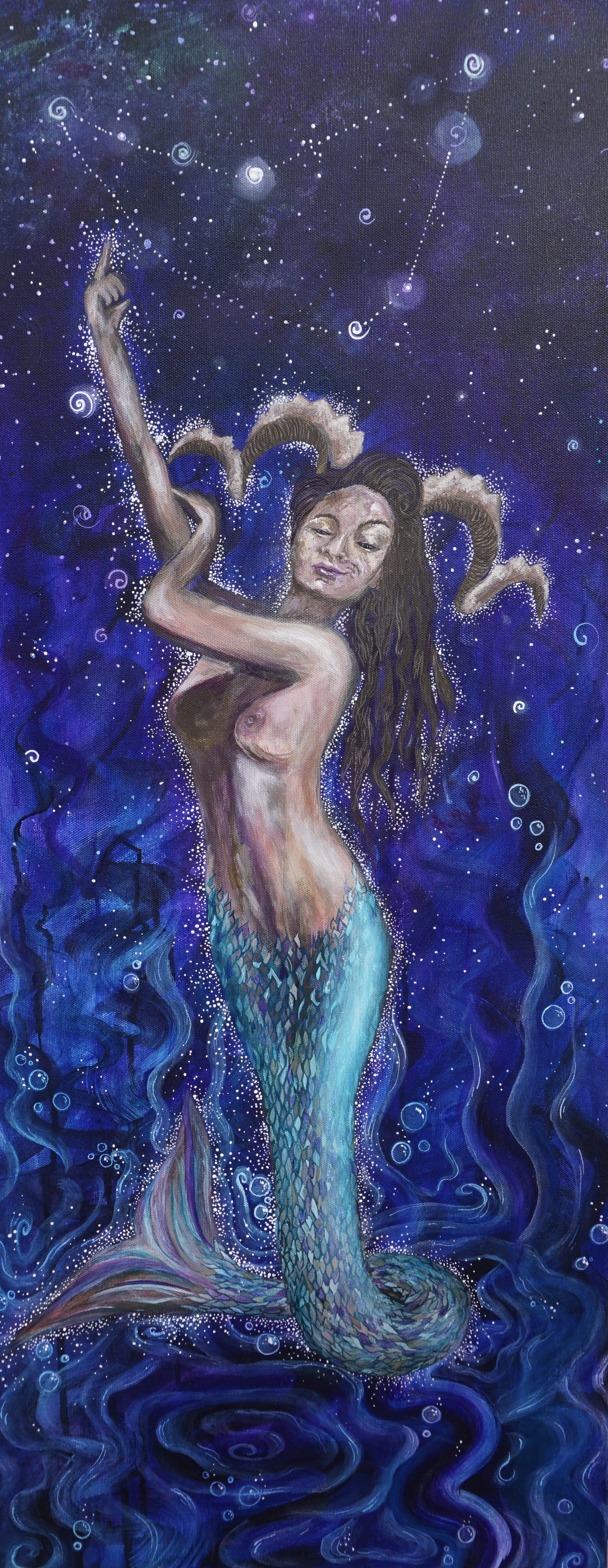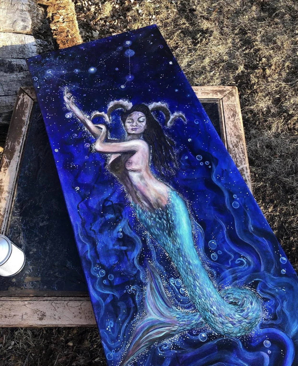 ✨Capricorns are known as sea goats..knowledgable, noble creatures who lived on the shores and laid in the sun to contemplate 🌞 I reimagined divine feminine energy as a badass sea goat goddess 🐐🐠