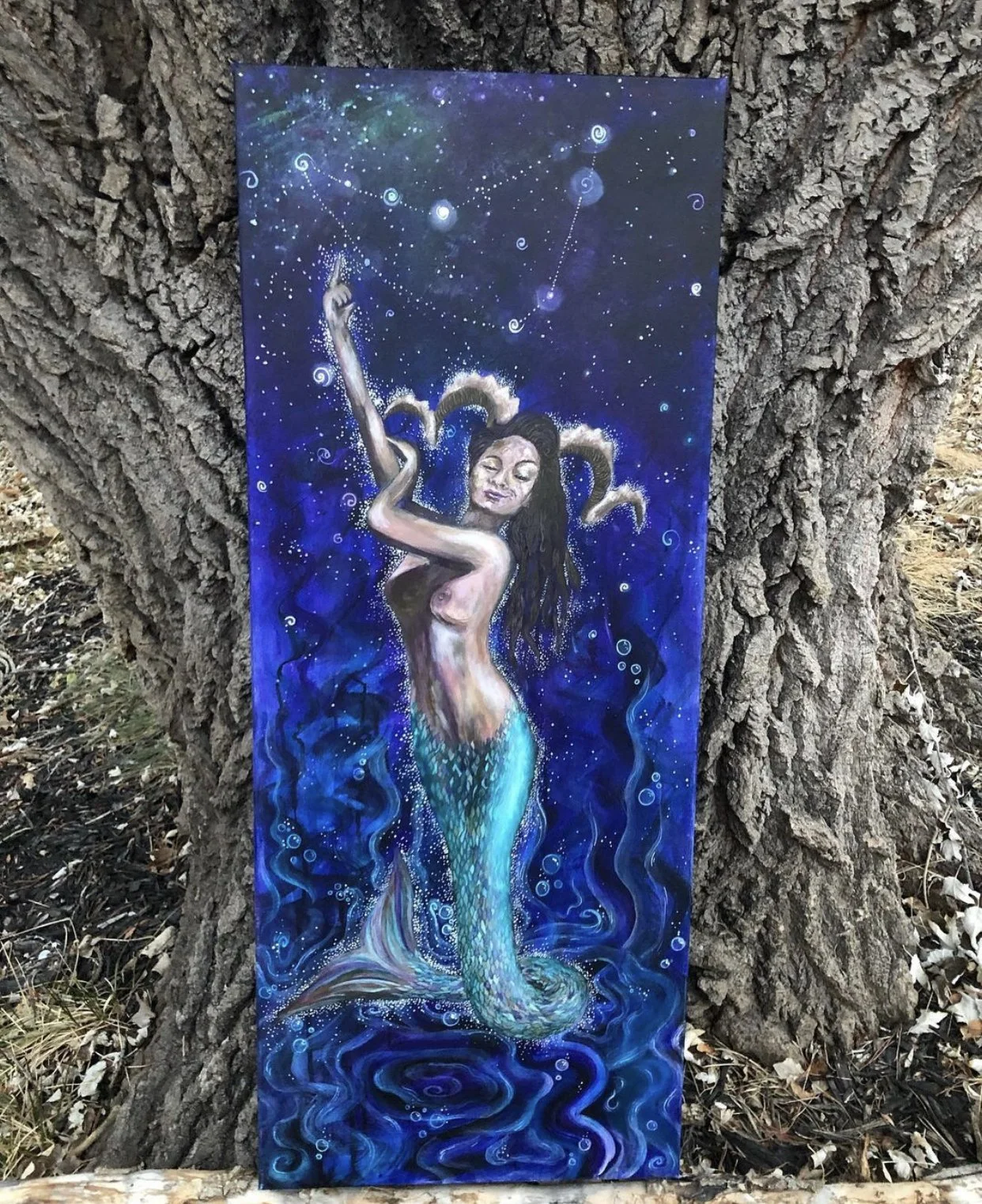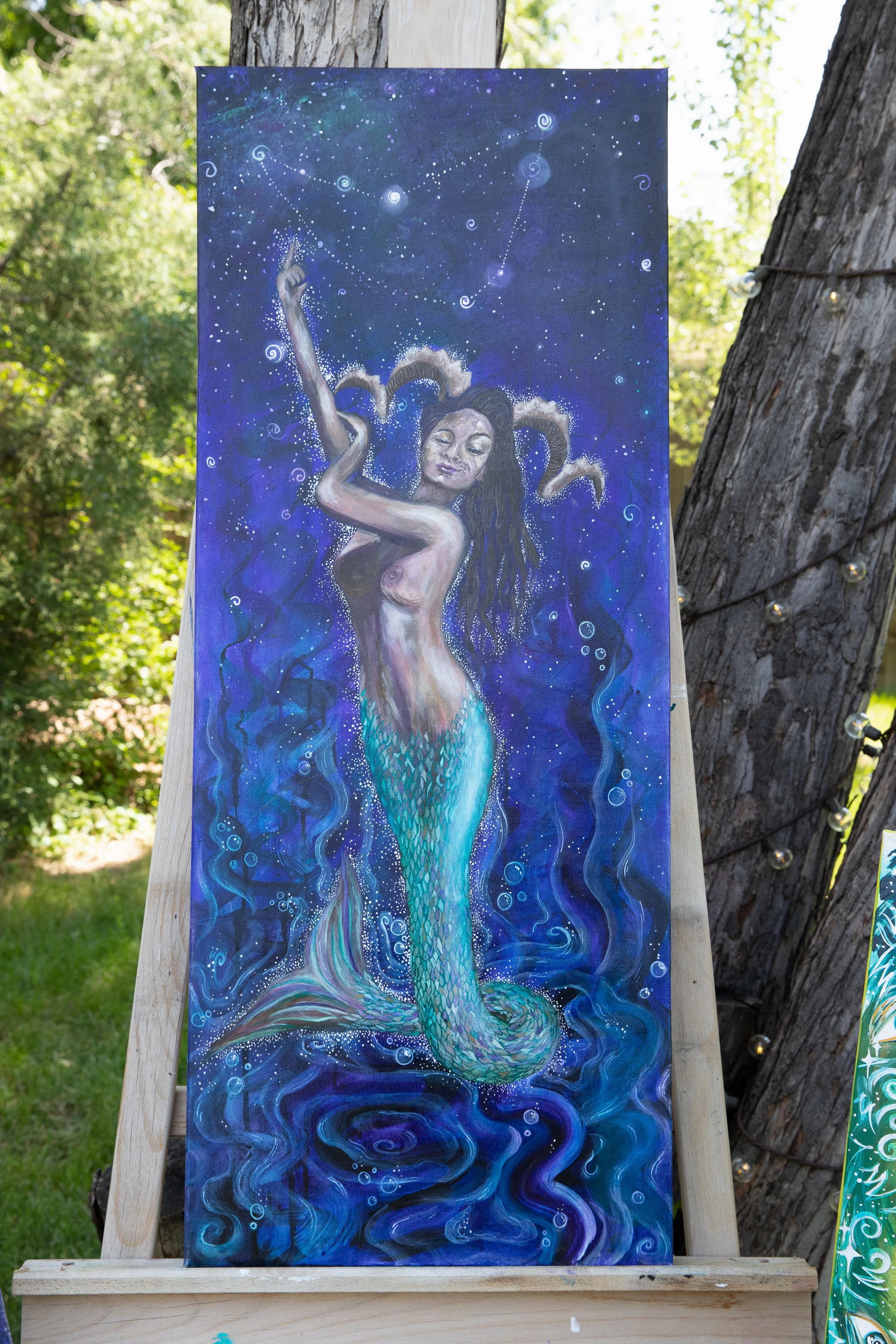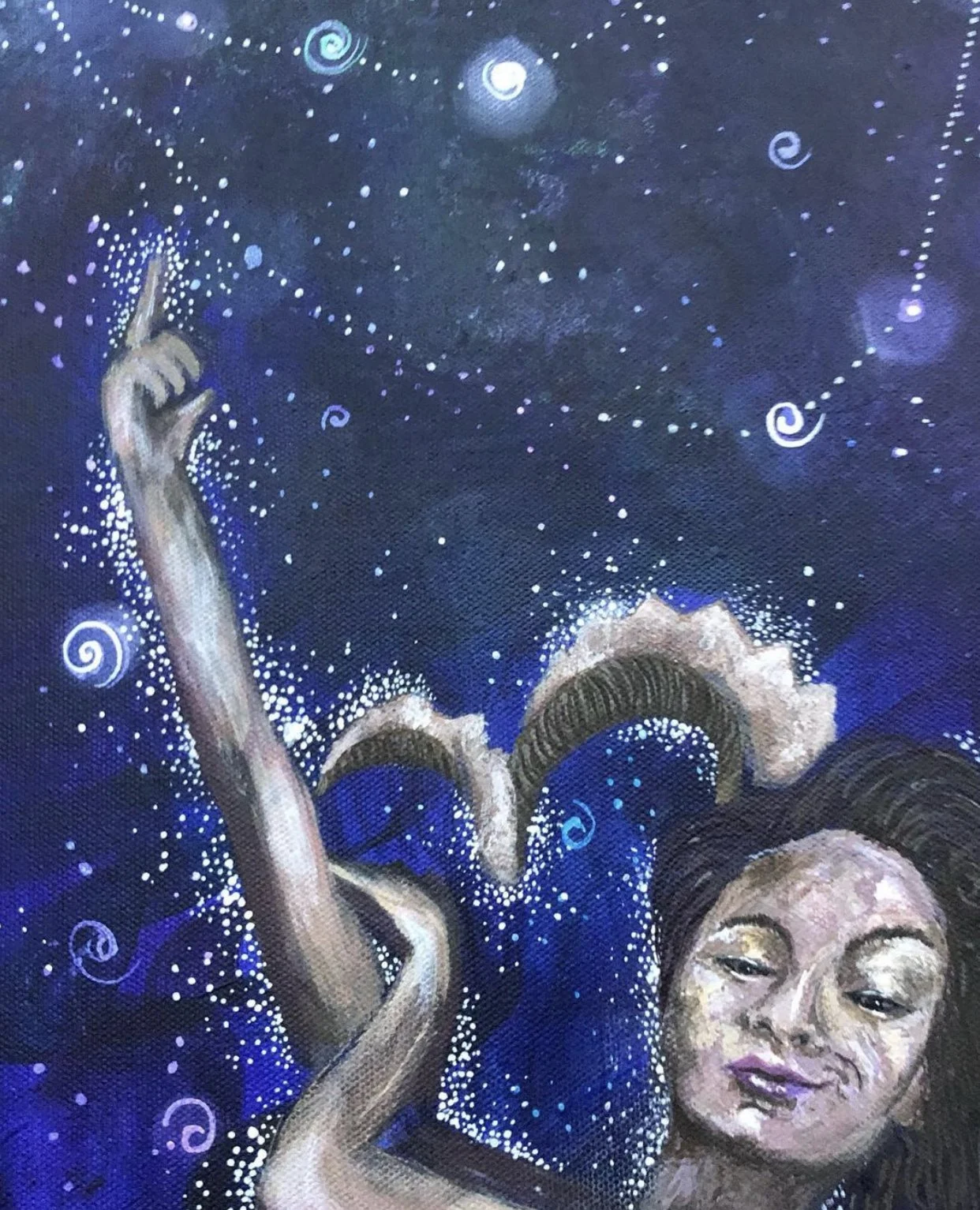 ♑️The journey of creating this painting, and the whole of this series, has taught me so much. As I dove deep into the sign of Capricorn, I explored how we all share aspects of self, and got to dive deep into figure painting as well. 🎨